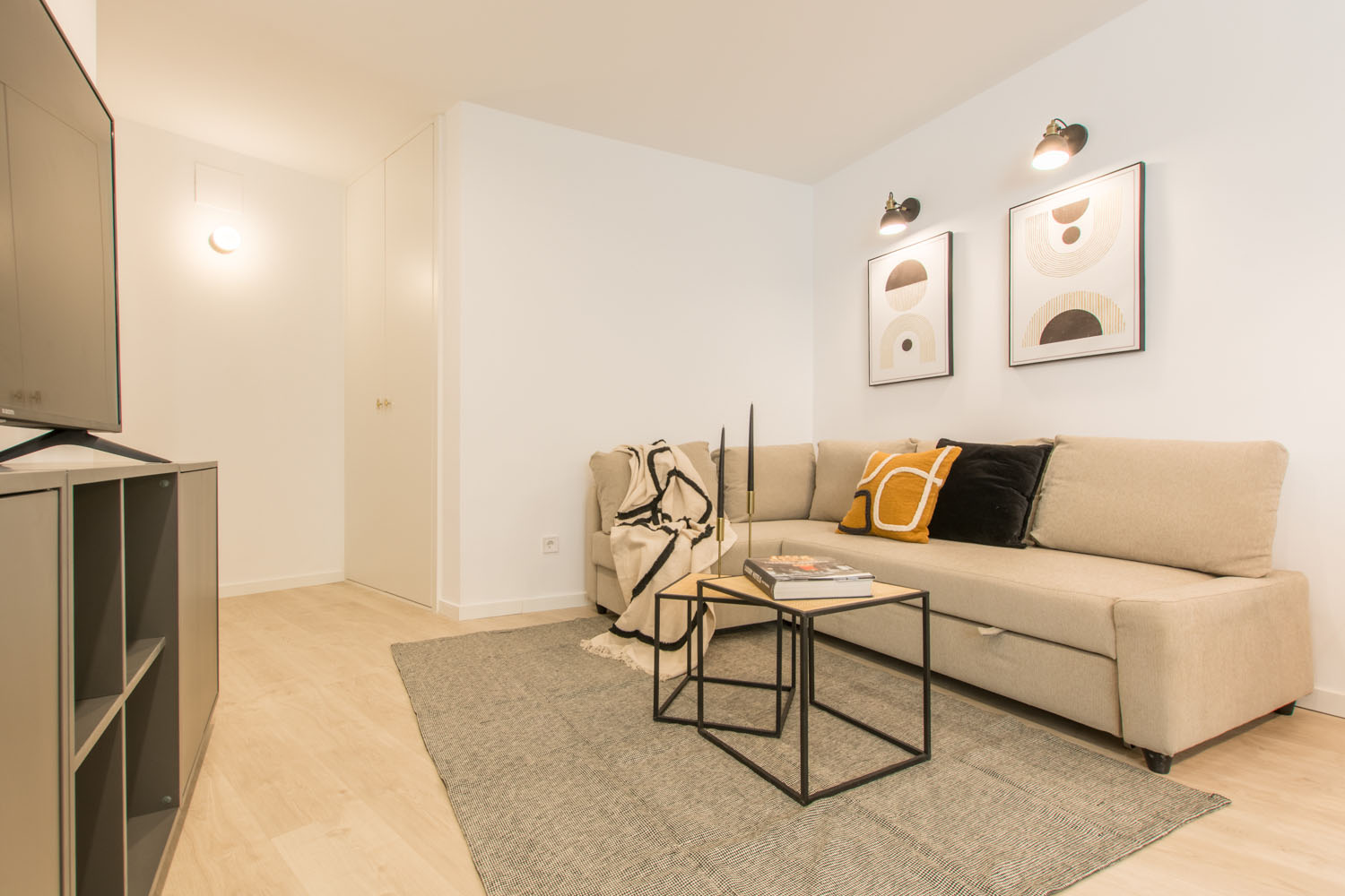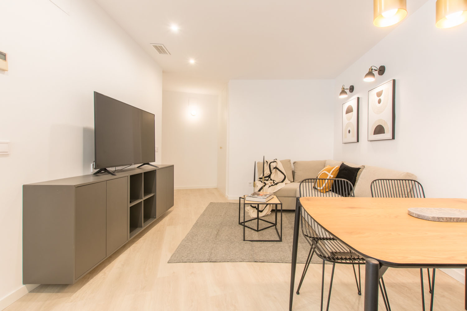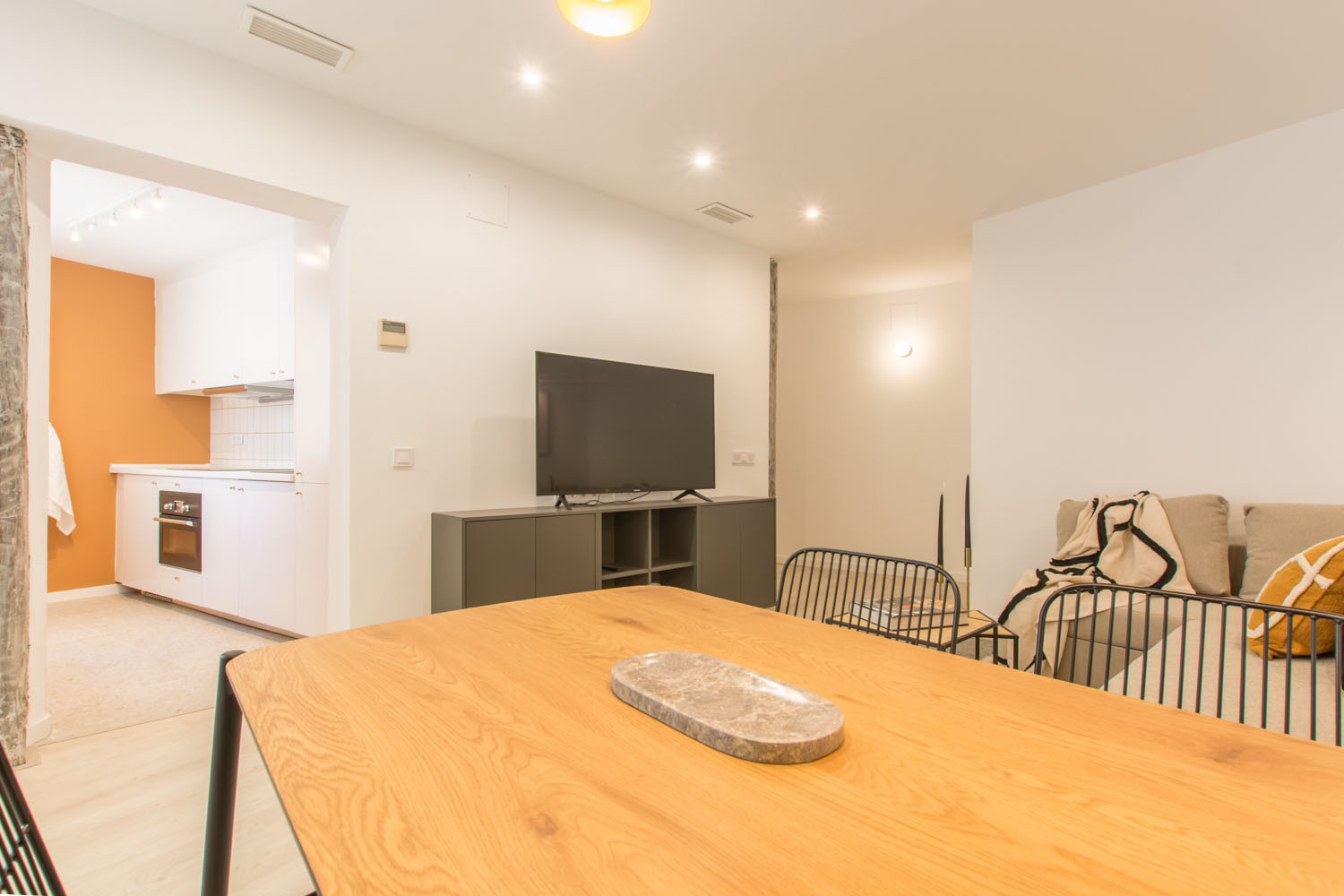 Amplio hall de entrada, dos dormitorios dobles con armarios amplios y canapé, salon comedor con sofá cama y smartTV, cocina con lavavajillas y baño. Listo para entrar a vivir.